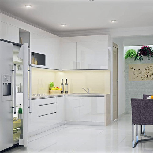 – Khi sử dụng kính cường lực sơn màu để ốp bếp sẽ giúp cho không gian tươi mới, sạch sẽ, cảm giác rộng rãi, bền đẹp với thời gian.