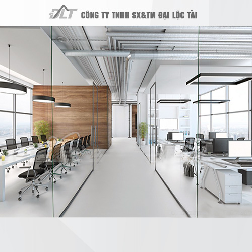 • Ánh sáng tự nhiên có thể truyền vào căn phòng, qua kính cường lực, đảm bảo độ sáng cho không gian làm việc.